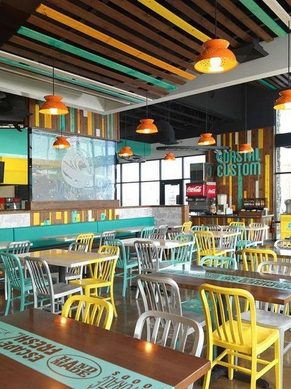 Nếu đối tượng thực khách của nhà hàng là người trẻ thì mẫu thiết kế nhà hàng Hàn Quốc này sẽ rất phù hợp. Khả năng tối đa không gian và hiệu năng sử dụng đều rất tốt. Màu sắc trẻ trung năng động chính là một điểm nhấn đặc biệt của mẫu thiết kế này.