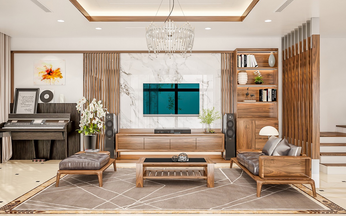 Bàn trà: Bàn trà làm bằng gỗ tự nhiên như gỗ sồi, gỗ óc chó, gỗ tần bì… là một trong những loại chất liệu bền, đẹp, và an toàn cho sức khỏe. Chọn kích thước bàn trà tương xứng với diện tích và đồng điệu với phong cách nội thất có thể nâng tầm, tạo điểm nhấn cho không gian phòng khách.
