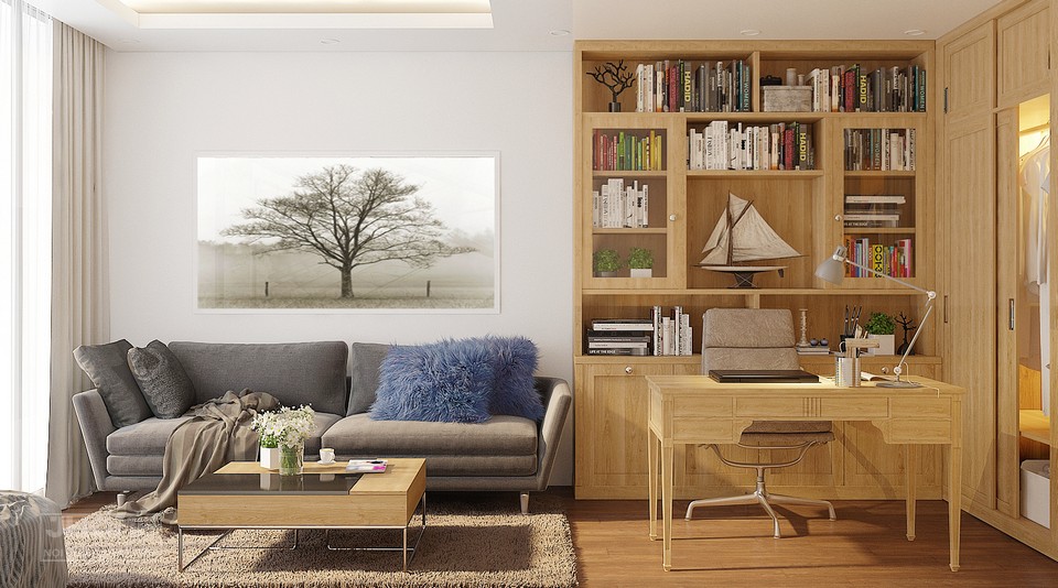 Diện tích thiết kế: 120m2 (2 phòng ngủ, 1 phòng khách, 1 phòng ăn, 1 phòng sinh hoạt chung, 1 phòng thờ, 1 phòng làm việc)