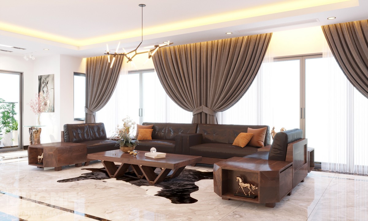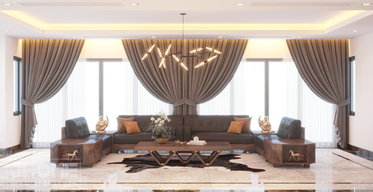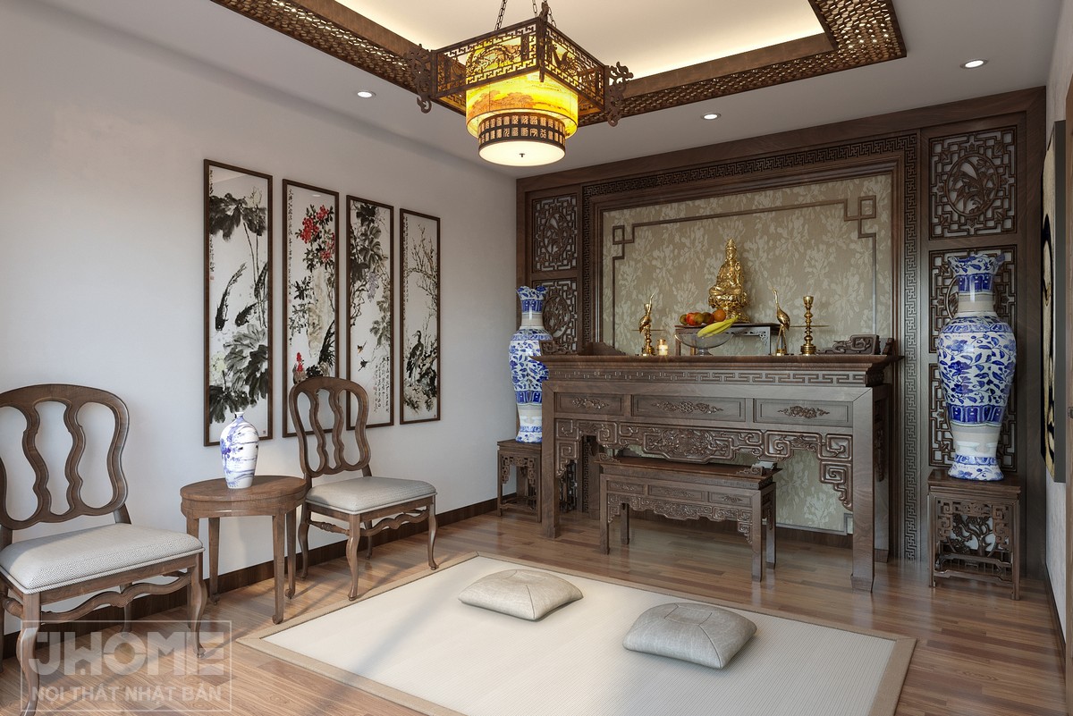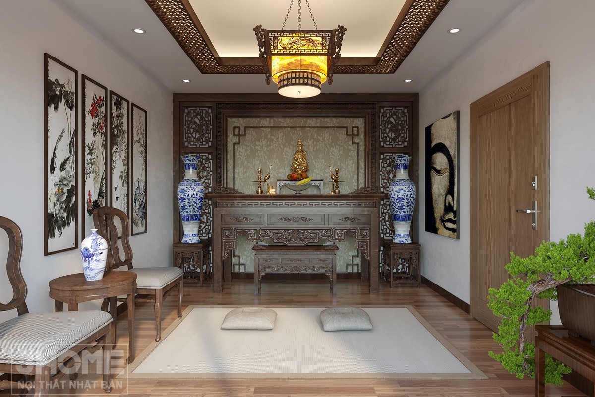 Diện tích thiết kế: 300m2 (3 phòng ngủ, 1 phòng khách, 1 phòng ăn, 1 phòng bếp + phòng thờ + phòng làm việc)