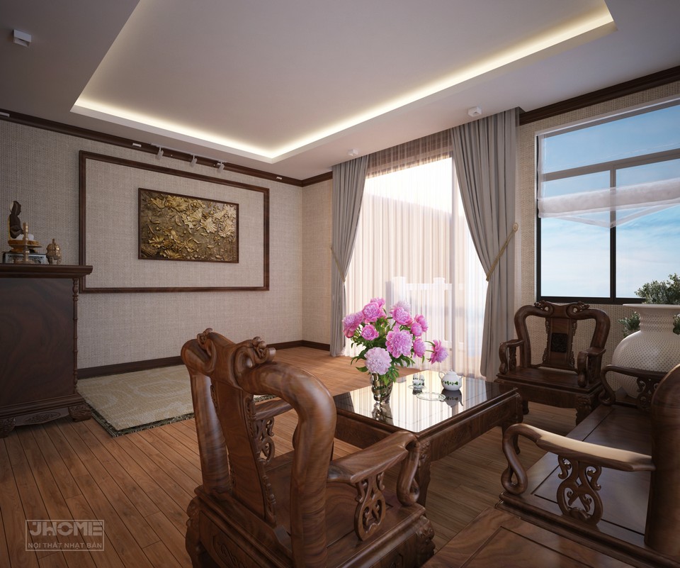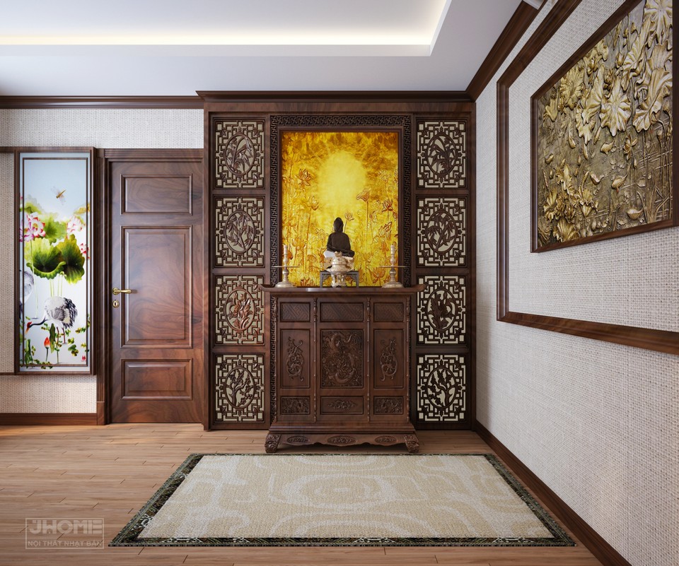 Diện tích thiết kế: 247,5m2 (4 phòng ngủ, 1 phòng khách, 1 phòng ăn, 1 phòng bếp, phòng thờ, wc)
