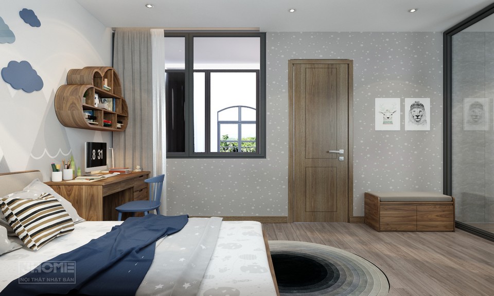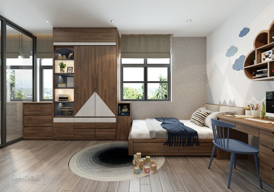 Diện tích thiết kế: 250m2 (3 phòng ngủ, 1 phòng khách, 1 phòng ăn, 1 phòng bếp, phòng làm việc)