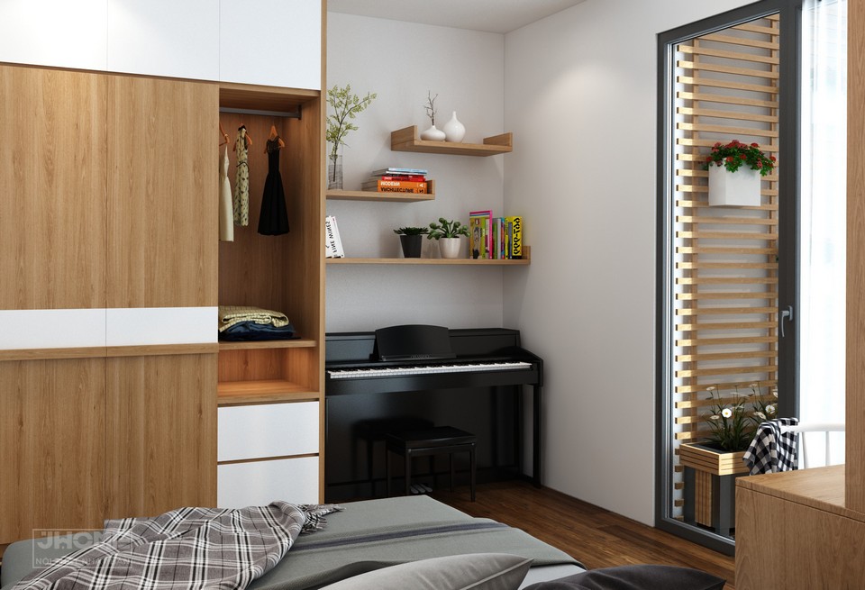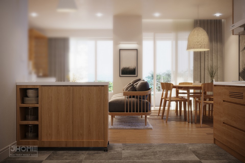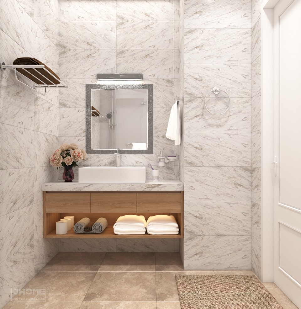 Diện tích thiết kế: 100m2 (2 phòng ngủ, 1 phòng khách, 1 phòng ăn, 1 phòng bếp, wc)