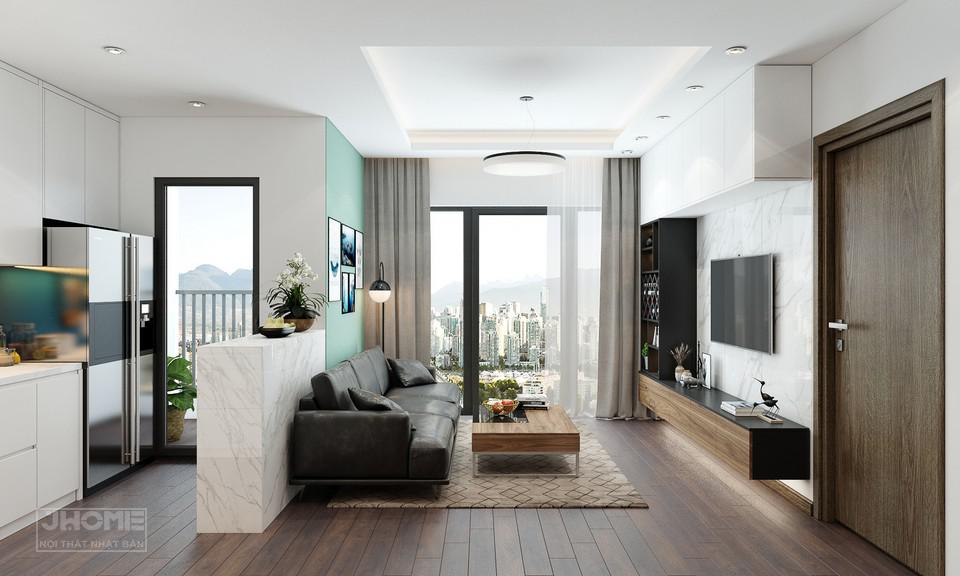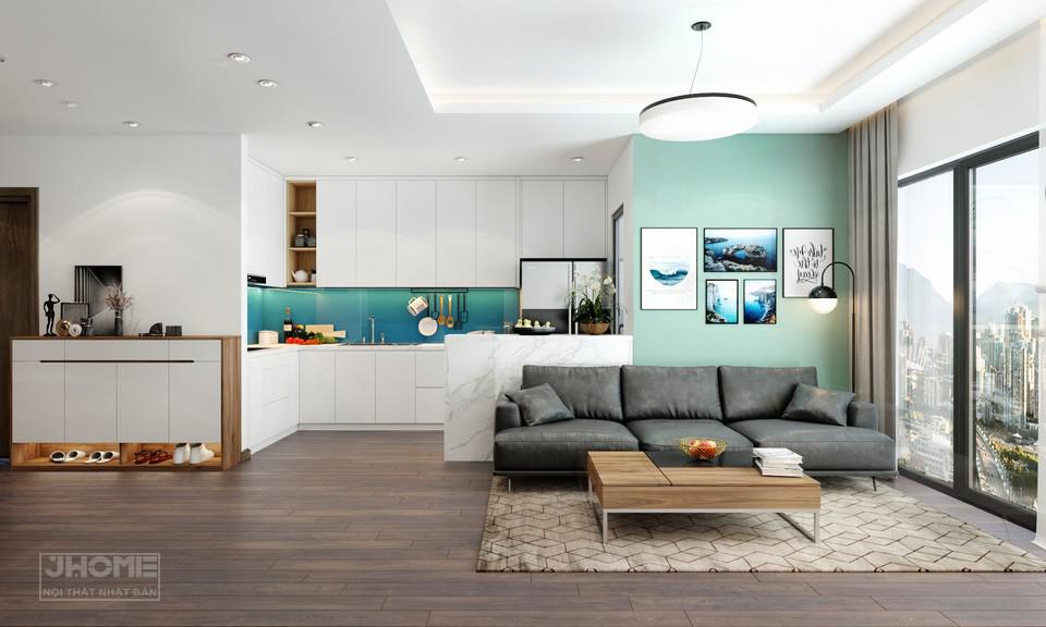 Diện tích thiết kế: 85m2 (1 phòng khách, 1 phòng ăn, phòng bếp, 2 phòng ngủ)