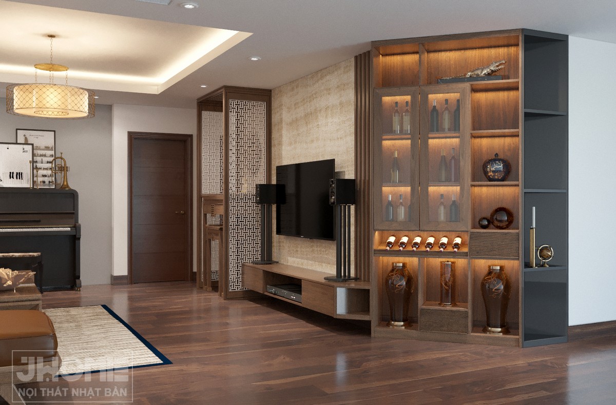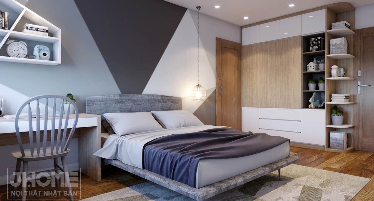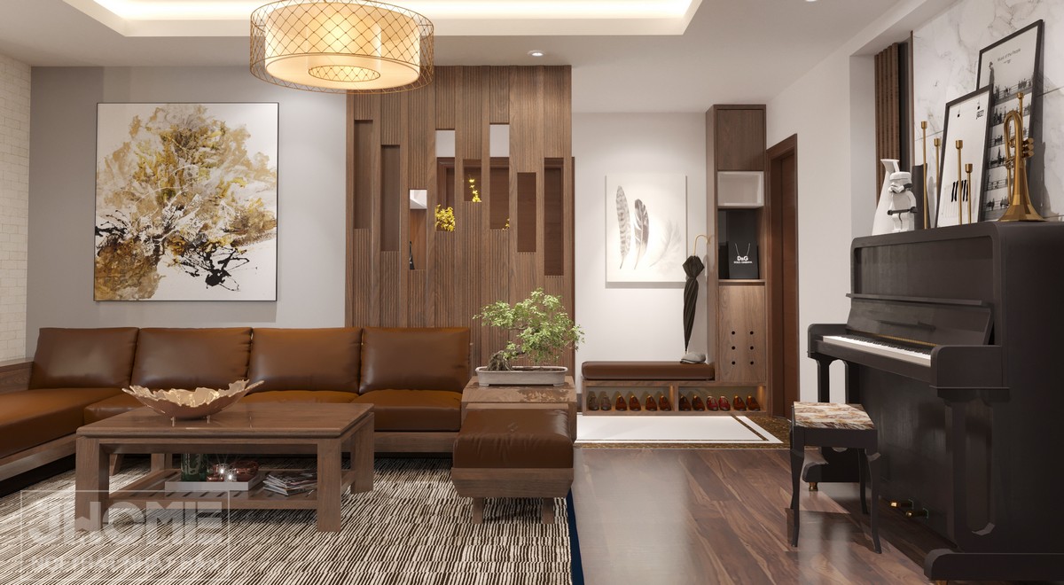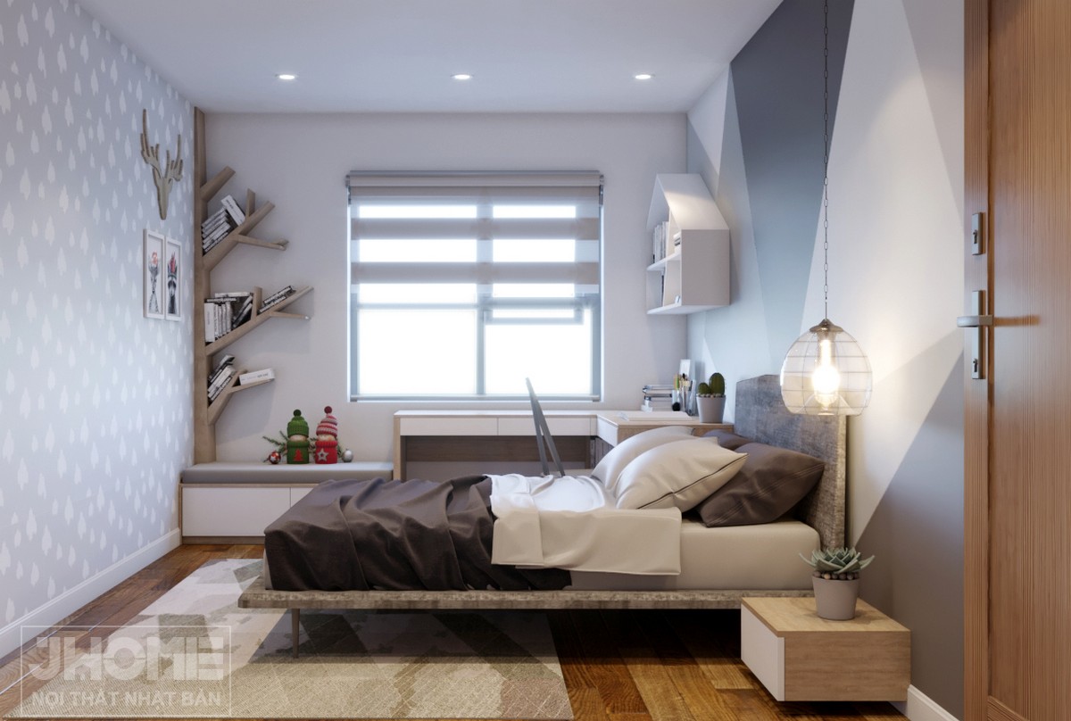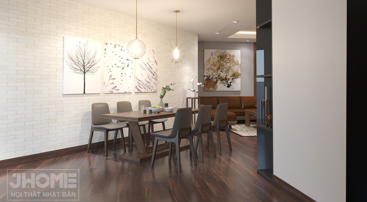 Diện tích thiết kế: 70m2 (2 phòng ngủ, 1 phòng khách, 1 phòng ăn)