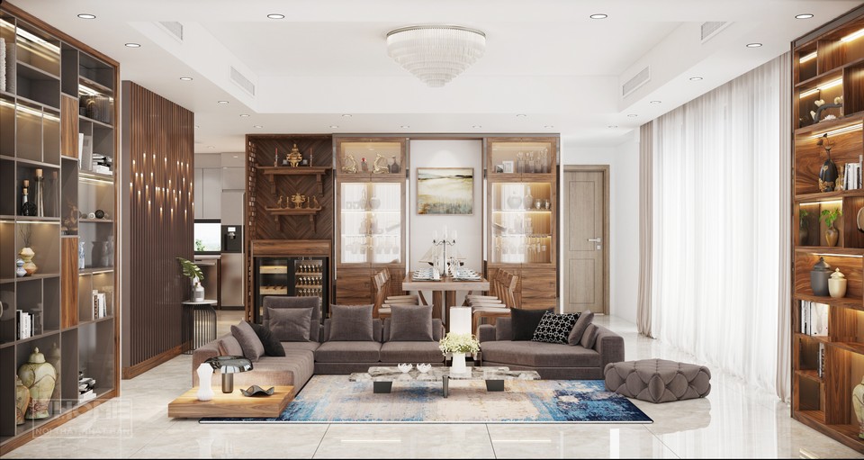 Diện tích thiết kế: 115m2 (2 phòng ngủ, 1 phòng khách, 1 phòng ăn, 1 phòng bếp)