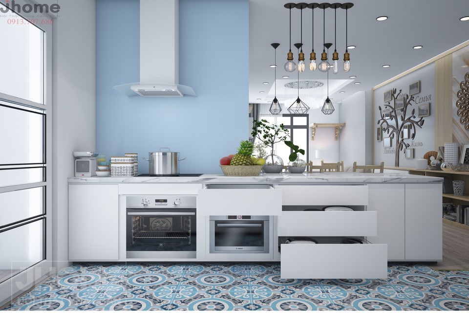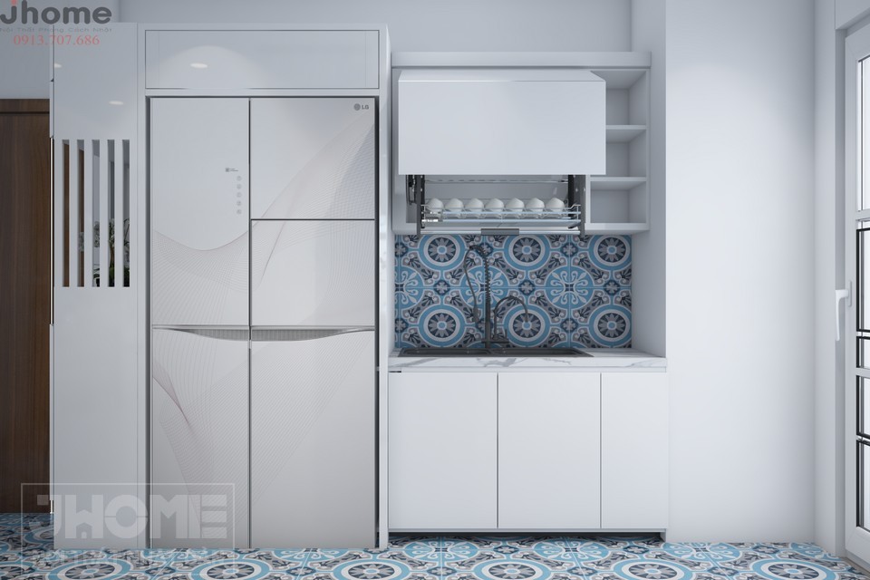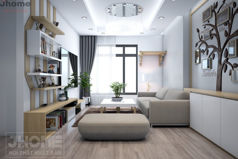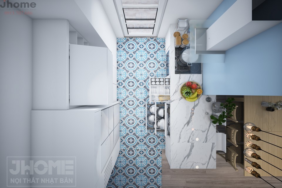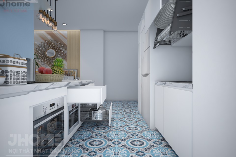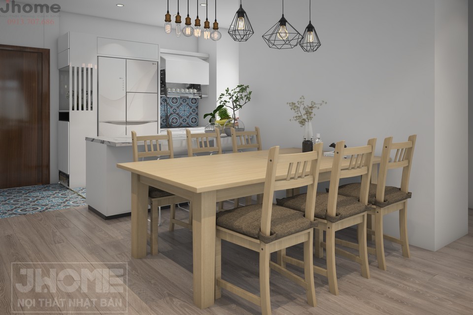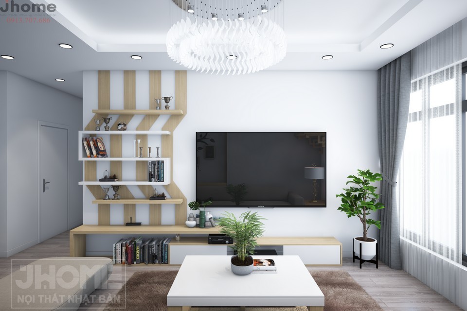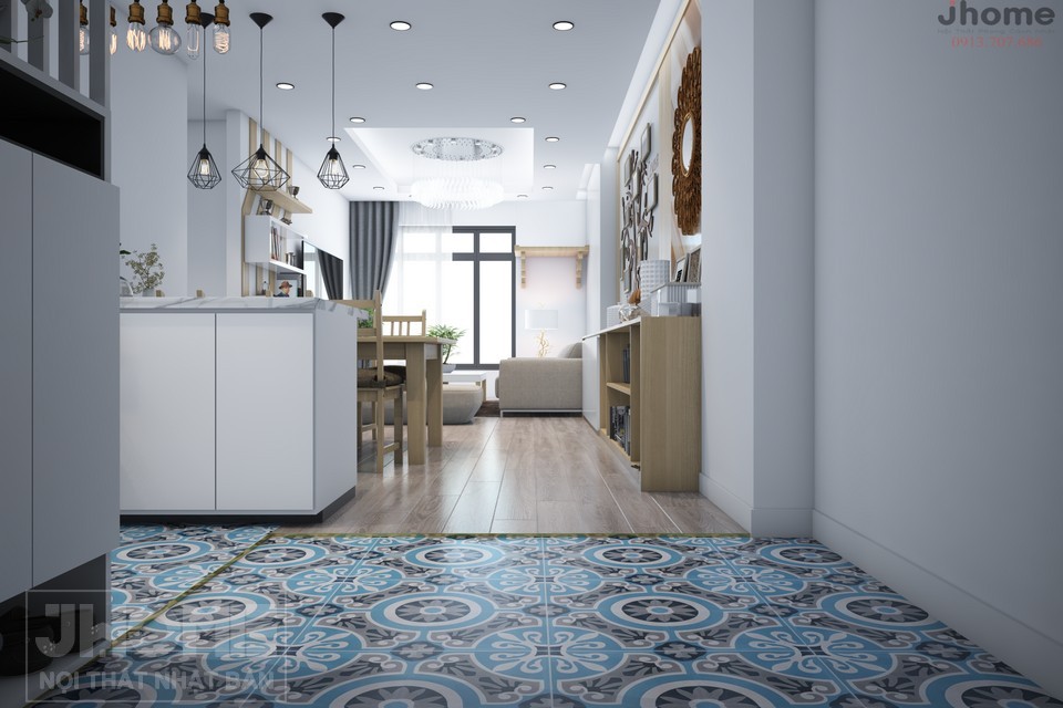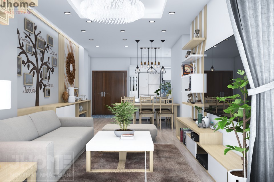 Diện tích thiết kế: 70m2 (2 phòng ngủ, 1 phòng khách, 1 phòng ăn, 1 phòng bếp)