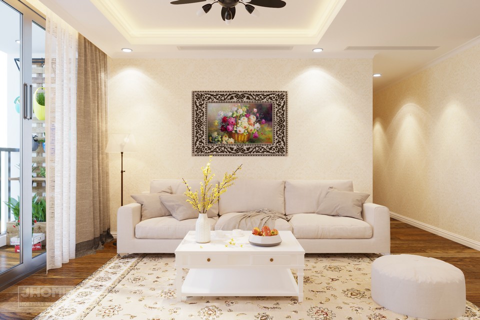 Diện tích thiết kế: 100m2 (3 phòng ngủ, 1 phòng khách, 1 phòng ăn)