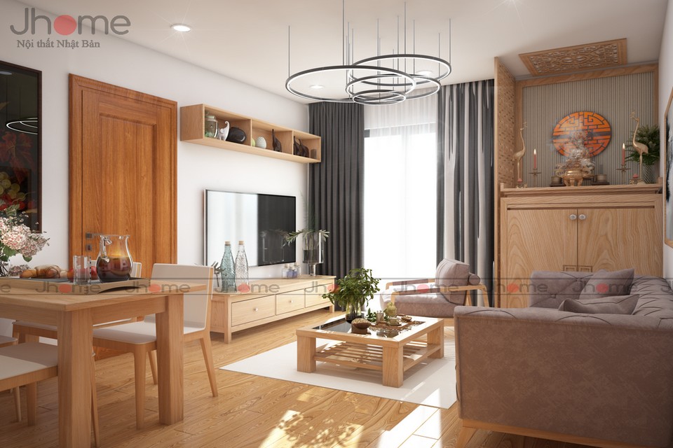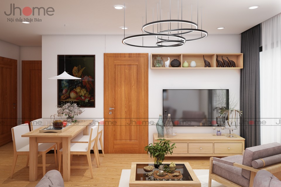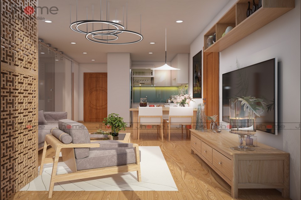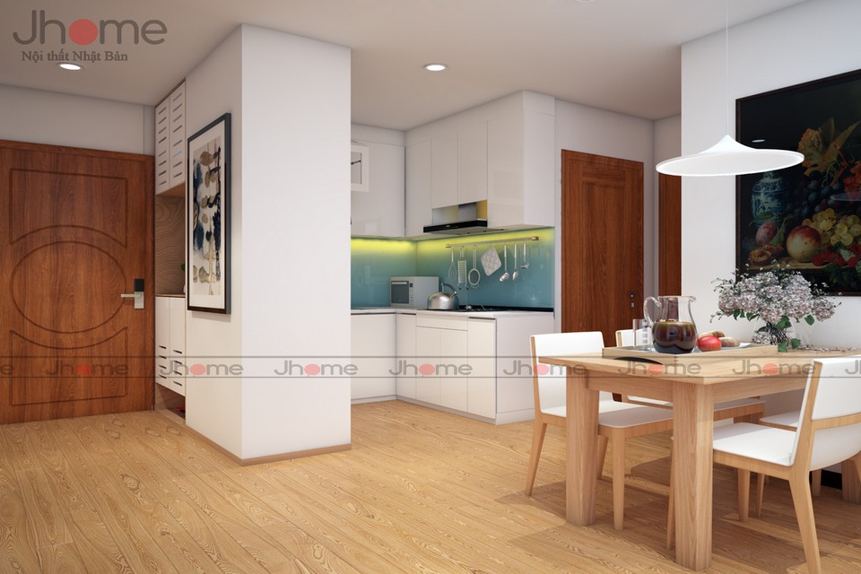 Diện tích thiết kế: 75m2 (2 phòng ngủ, 1 phòng khách, 1 phòng ăn, 1 phòng bếp)