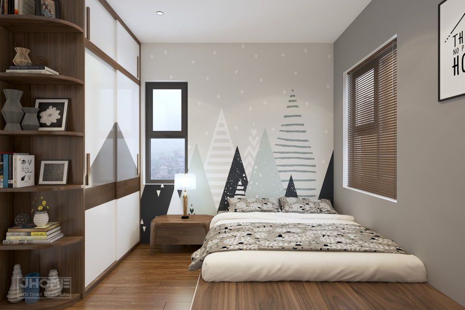 Phòng ngủ con có thiết kế hiện đại với những hình ảnh trang trí tường trẻ trung