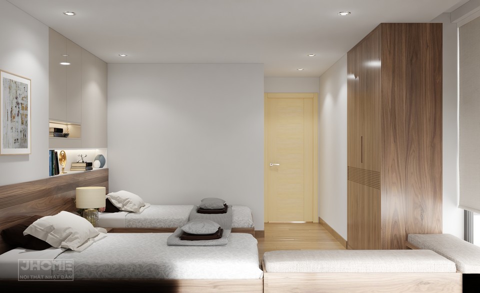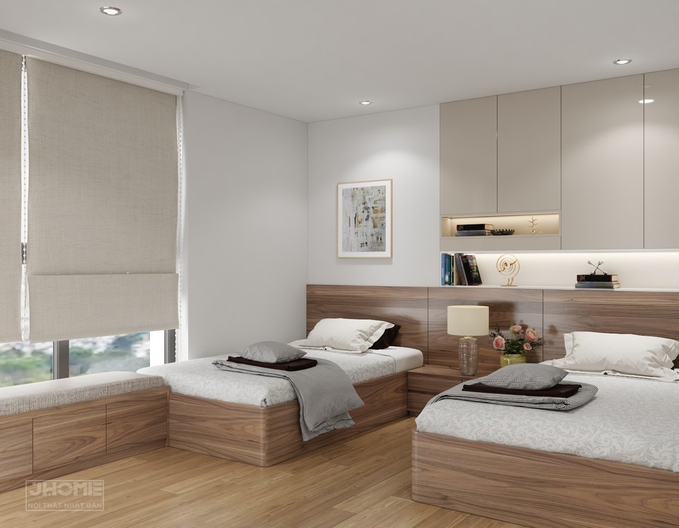 Phòng ngủ được thiết kế với 2 chiếc giường đơn