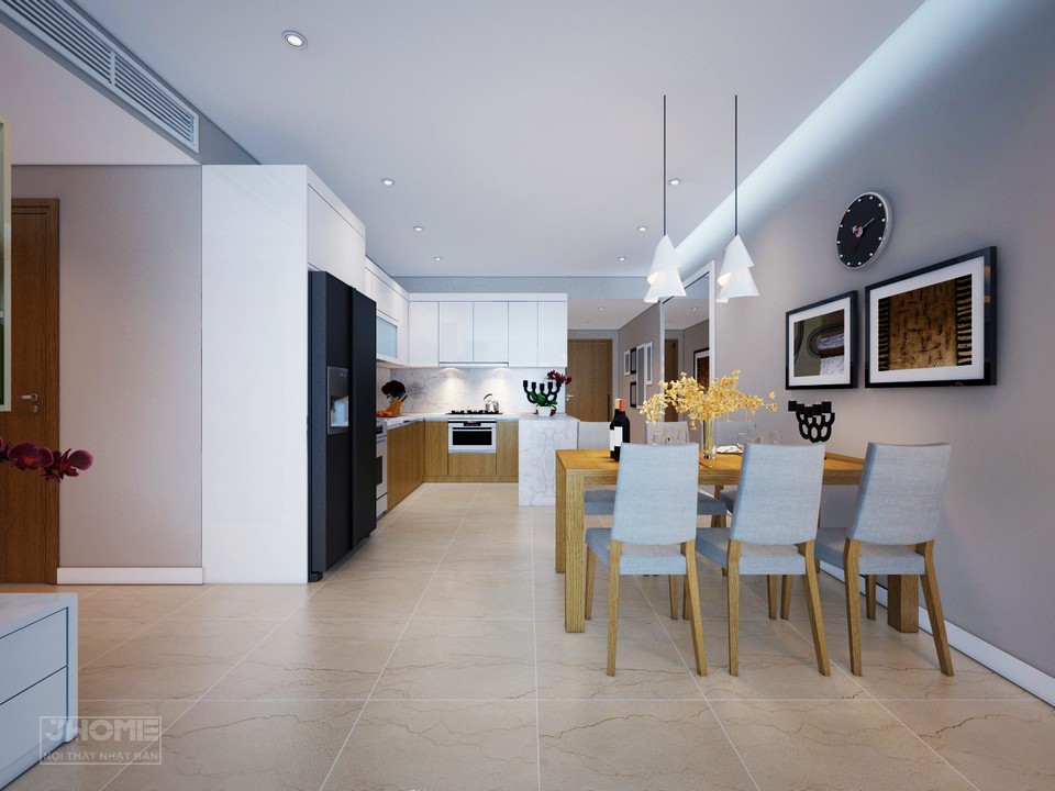 Diện tích thiết kế: 87m2 (2 phòng ngủ, 1 phòng khách, 1 phòng ăn, 1 phòng bếp)