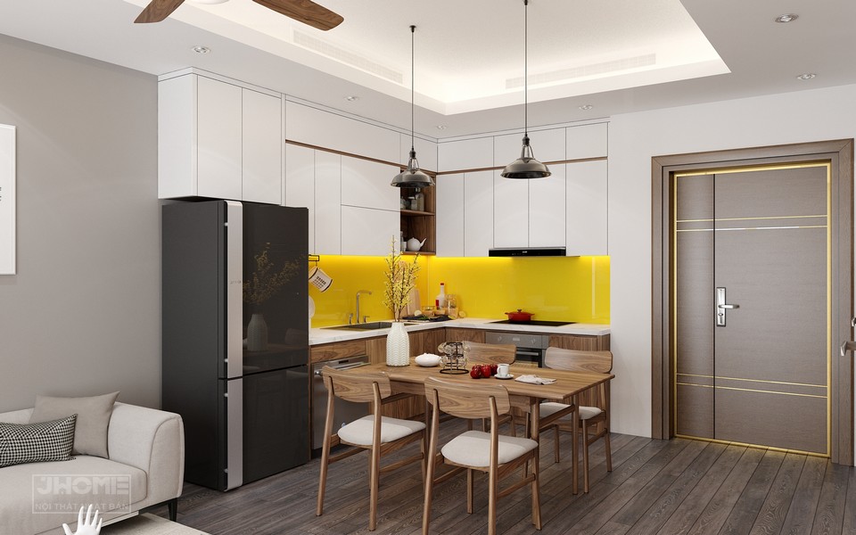 Diện tích thiết kế: 60m2 (phòng ngủ, 1 phòng khách, 1 phòng ăn, 1 phòng bếp, wc)