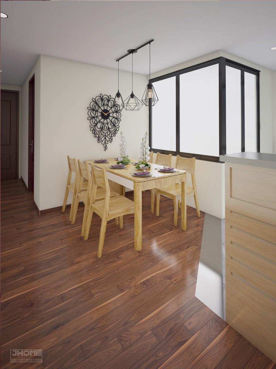 Diện tích thiết kế: 90m2 (3 phòng ngủ, 1 phòng khách, 1 phòng ăn)
