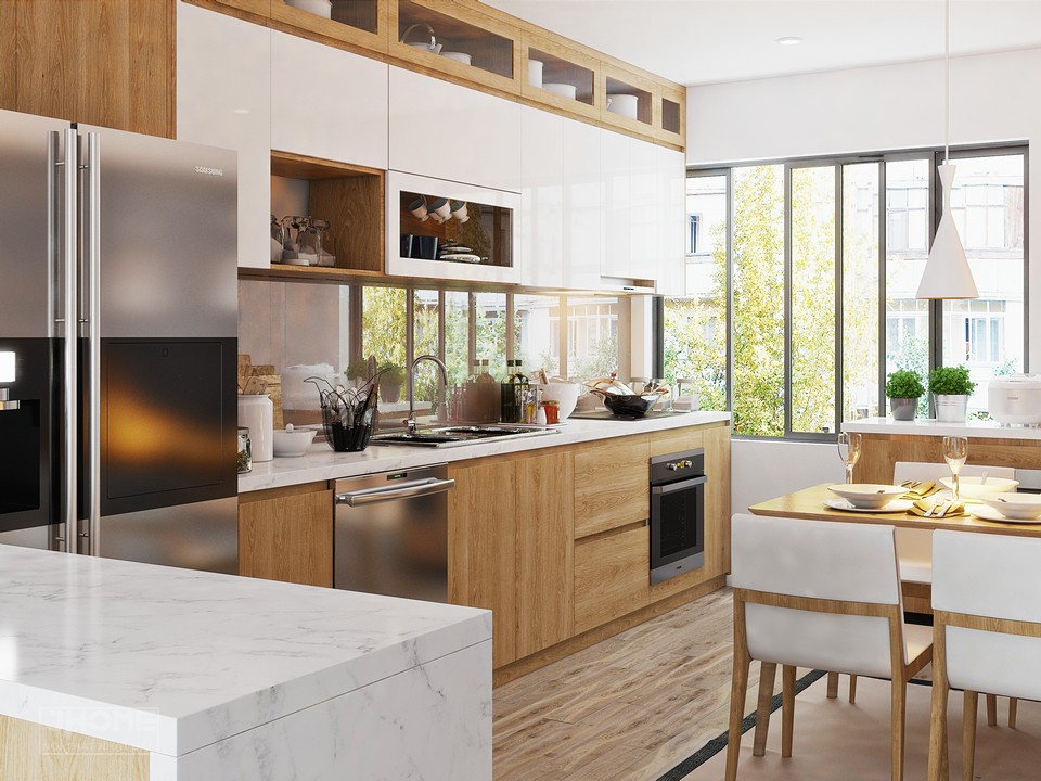 Diện tích thiết kế: 100m2 (3 phòng ngủ, 1 phòng khách, 1 phòng ăn, 1 phòng bếp)