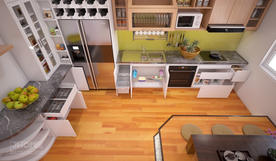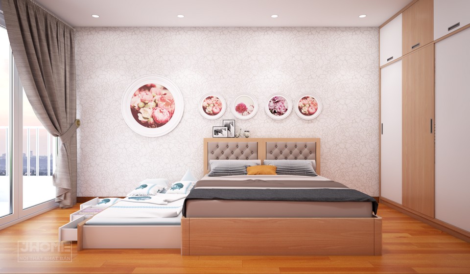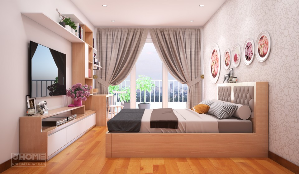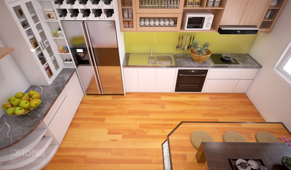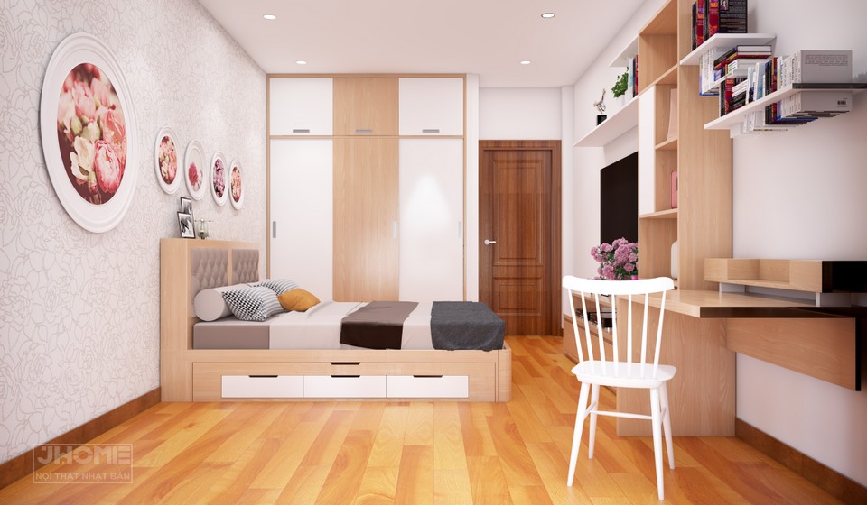 Diện tích thiết kế: 57m2 (phòng ngủ, 1 phòng khách, 1 phòng ăn, 1 phòng bếp)