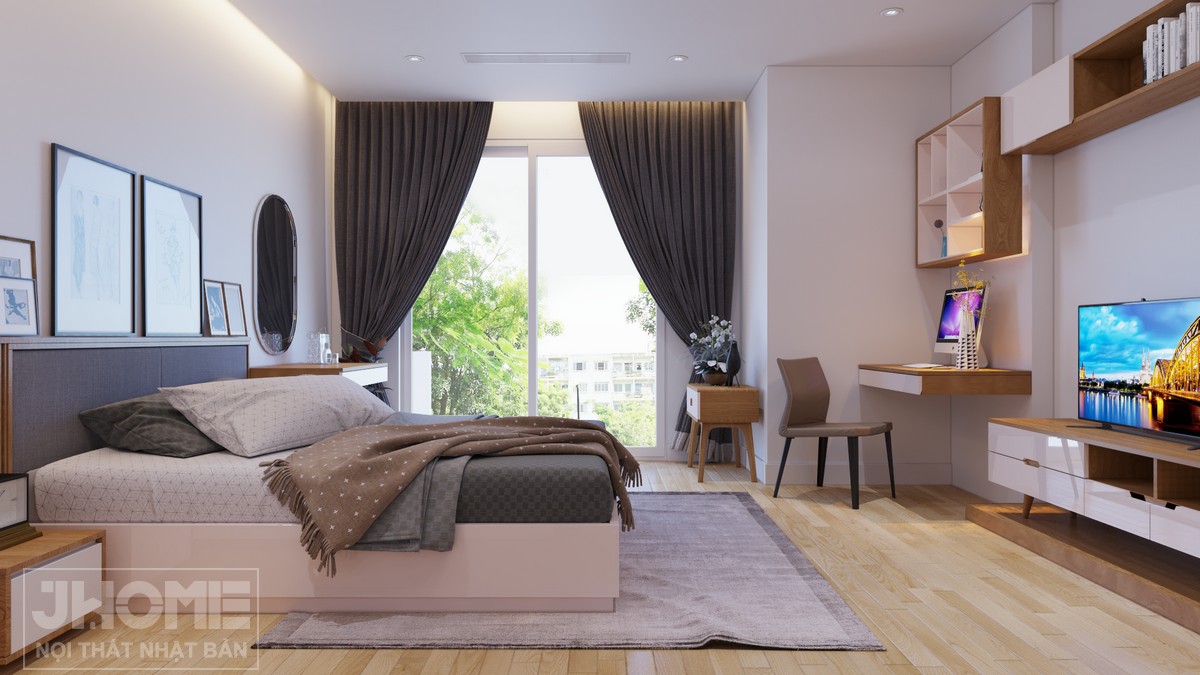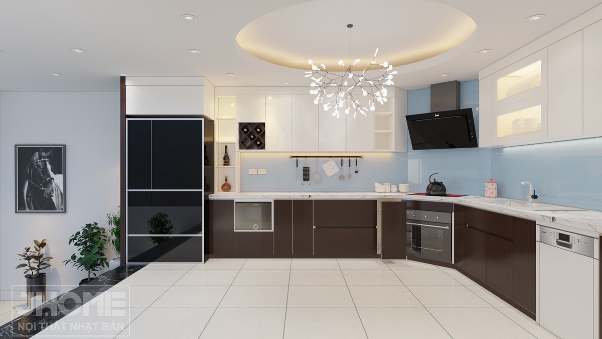 Diện tích thiết kế: 100m2 (2 phòng ngủ, 1 phòng khách, 1 phòng ăn, 1 phòng bếp)