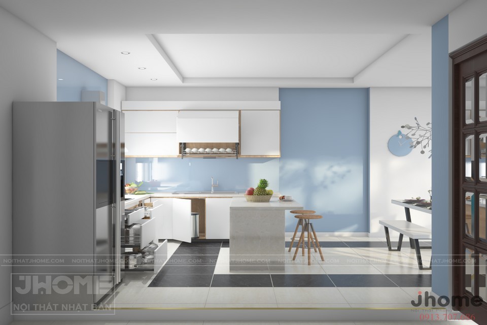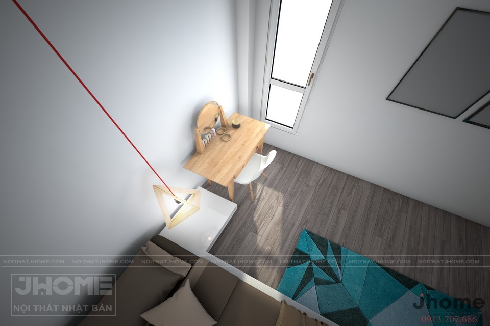 Diện tích thiết kế: 70m2 (2 phòng ngủ, 1 phòng khách, 1 phòng ăn, 1 phòng bếp)
