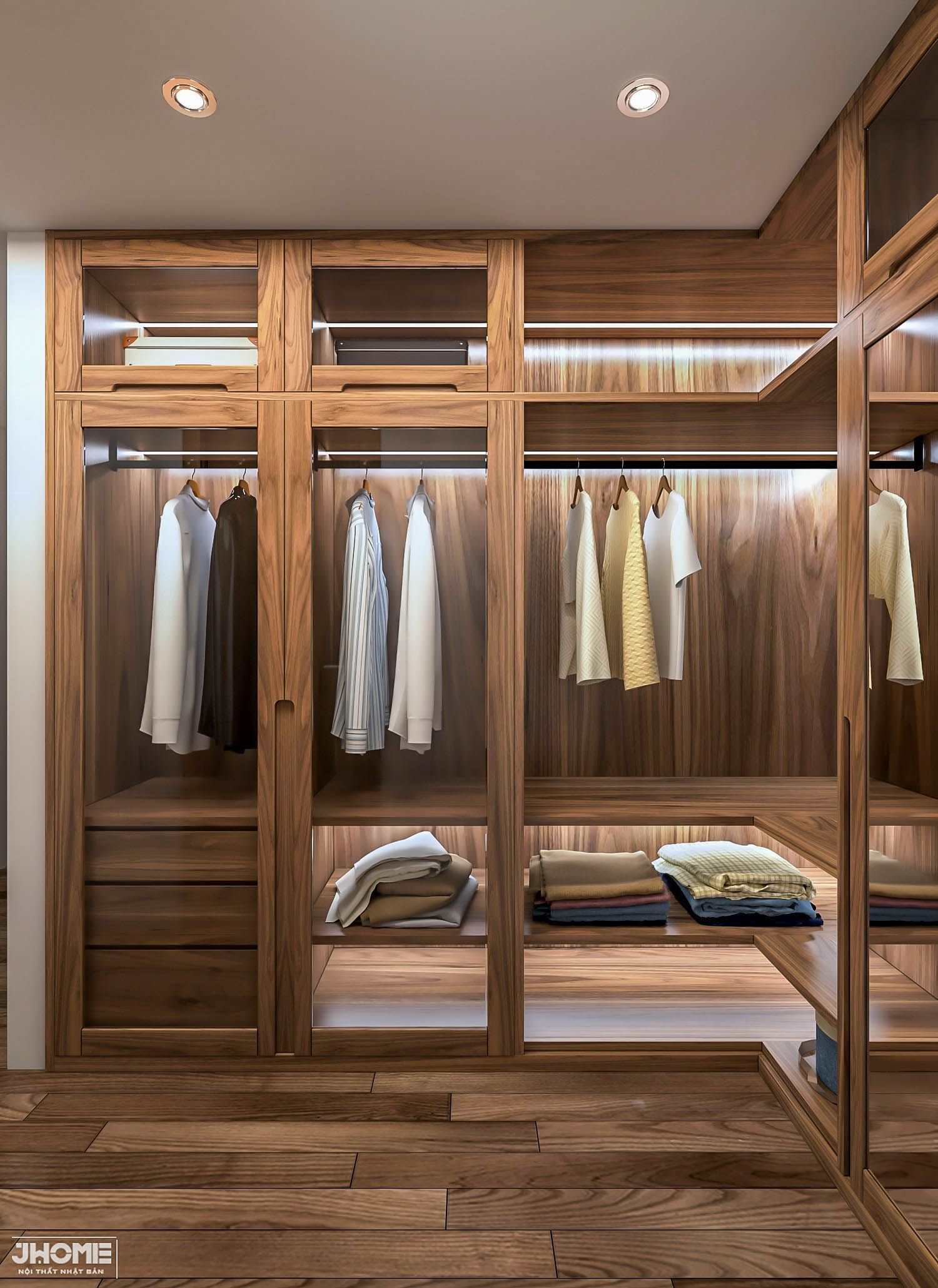 Tủ quần áo được làm bằng chất liệu gỗ óc chó kết hợp cánh kính hiện đại