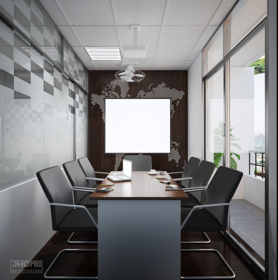 Phòng họp được trang bị với bộ ghế họp có tựa lưng giả da