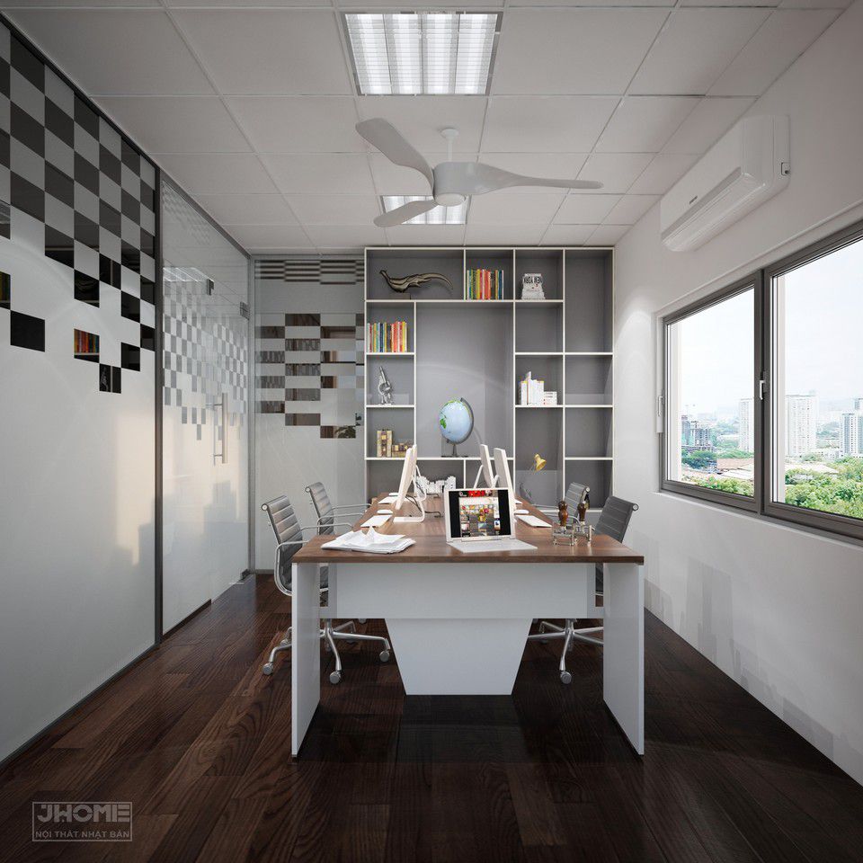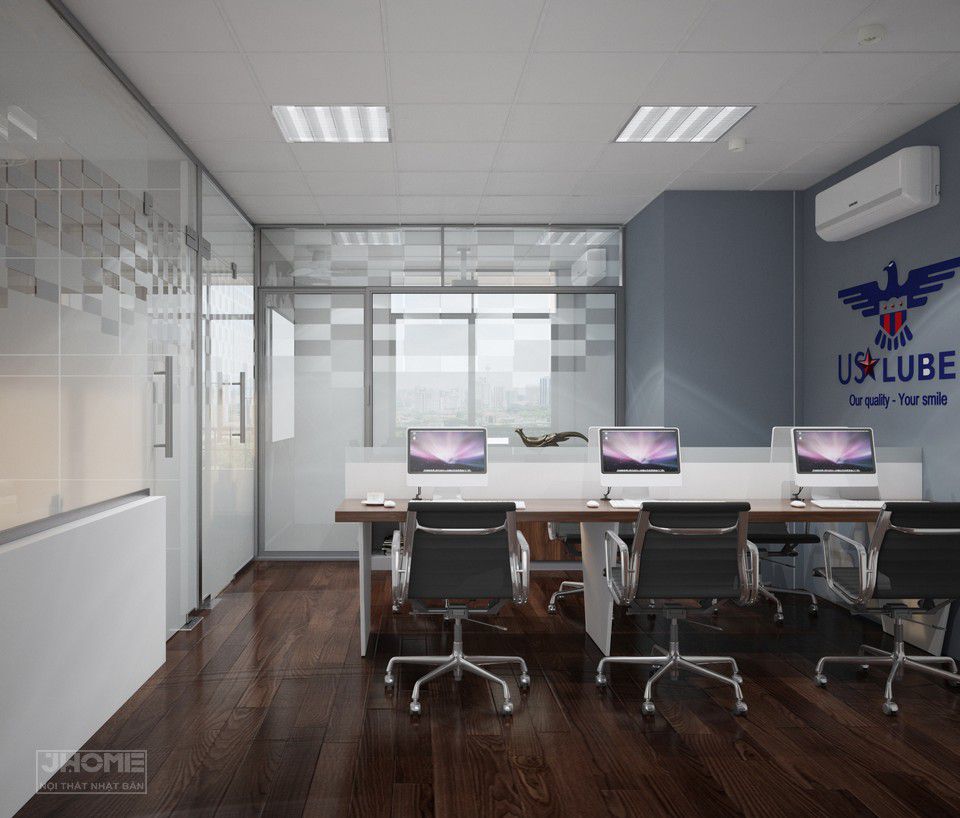 Diện tích thiết kế: 90m2 (phòng giám đốc, phòng họp, phòng kế toán, phòng kinh doanh)