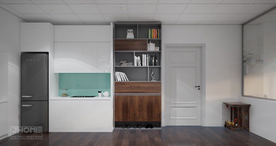 Khu vực tủ bếp, giá sách làm bằng chất liệu gỗ công nghiệp MDF chống ẩm