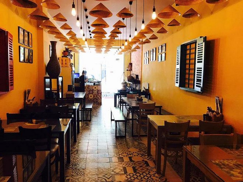 Trần nhà hàng được thiết kế mang đậm dấu ấn truyền thống Việt
