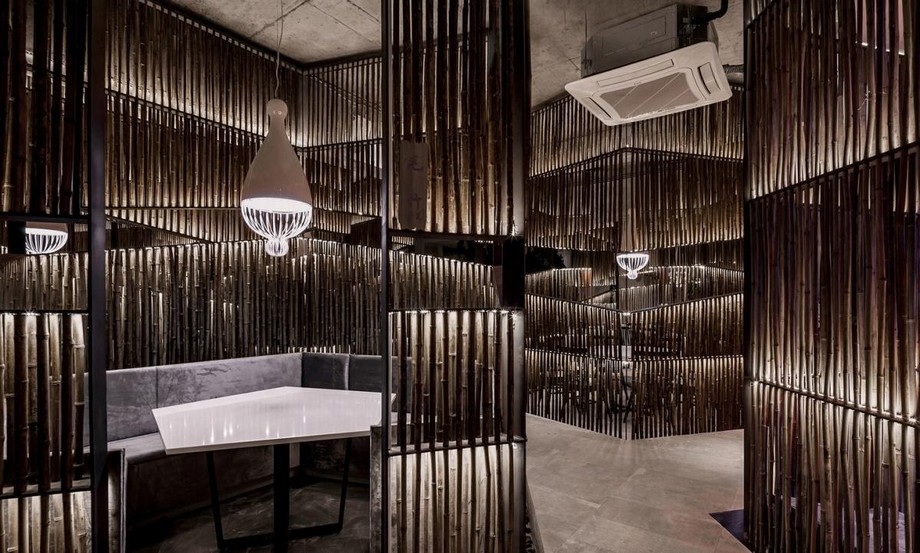Sự kết hợp giữa tre và ánh sáng tạo nên một không gian cực kỳ sang trọng